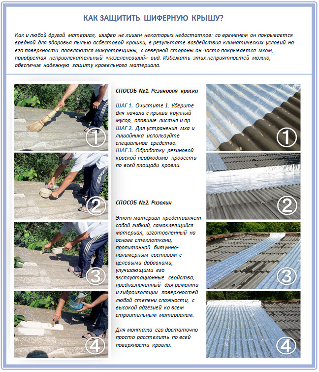Важно отметить – защитная прослойка для шифера решает не только эстетические недостатки основание, но и способствует повышению гидрофобности покрытия, увеличивая тем самым срок эксплуатации кровельного покрытия.