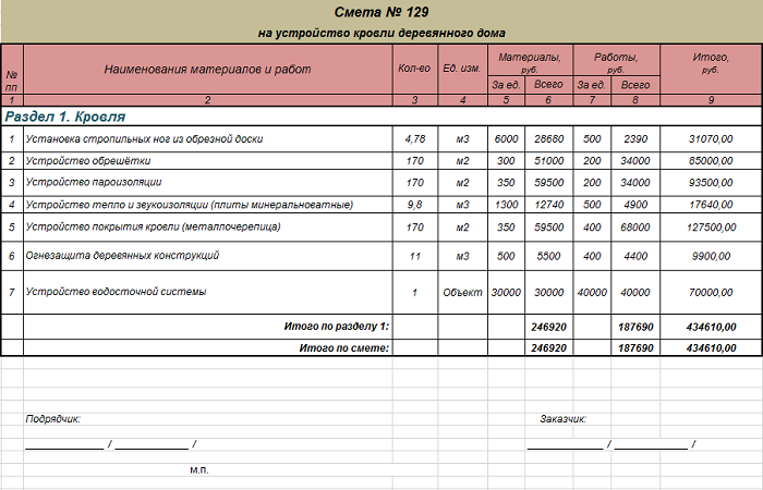 Смету на устройство кровли в формате Excel можно скачать ниже.